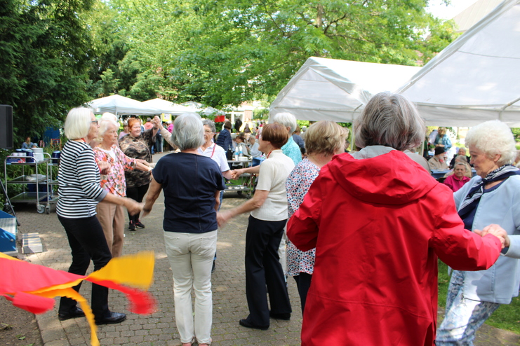 Am 05.06.2024, fand unser alljährliches Sommerfest statt! Neben Getränken, Kuchen, Bratwurst, Reibeplätzchen und vielem mehr gab es natürlich auch wie jedes Jahr für unsere Bewohner:innen und ihre Gäste Unterhaltung auf unserer frisch renovierten Bühne: eine traditionelle Tanzgruppe, die Tanzgarde der Stadtgarde Telgte, die Turnados und ein traditioneller Chor mit Akkordeonbegleitung. Zusätzlich gab es Stände unserer Handarbeitsgruppen, die ihre Marmeladen und Strickwaren angeboten haben. "Danke" an alle Ehrenamtlichen, Helfer:innen und Mitarbeiter:innen! Weitere Eindrücke finden Sie hier.